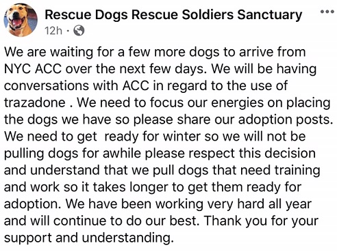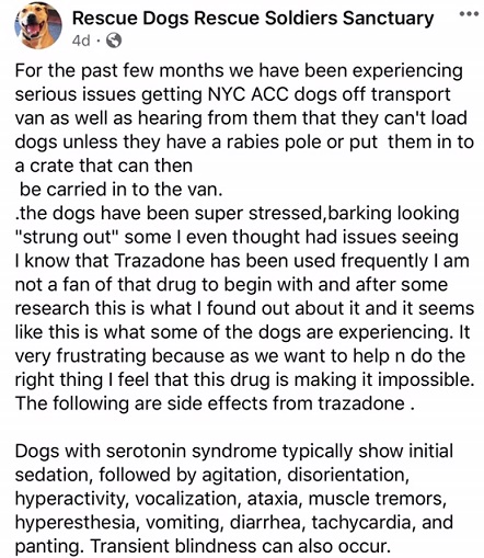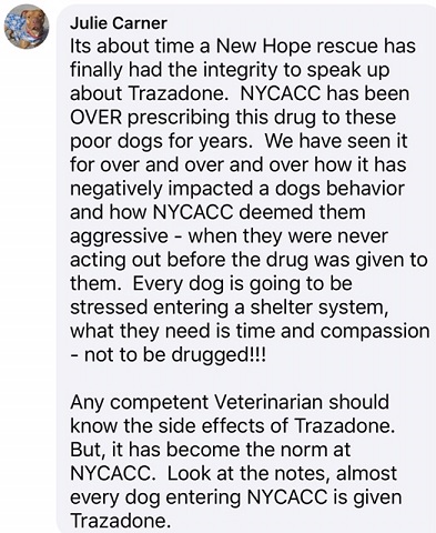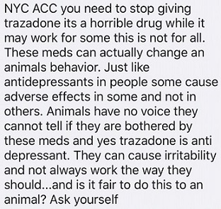 A New Hope Rescue speaks out about NYCACC's Trazodone overdose practices.