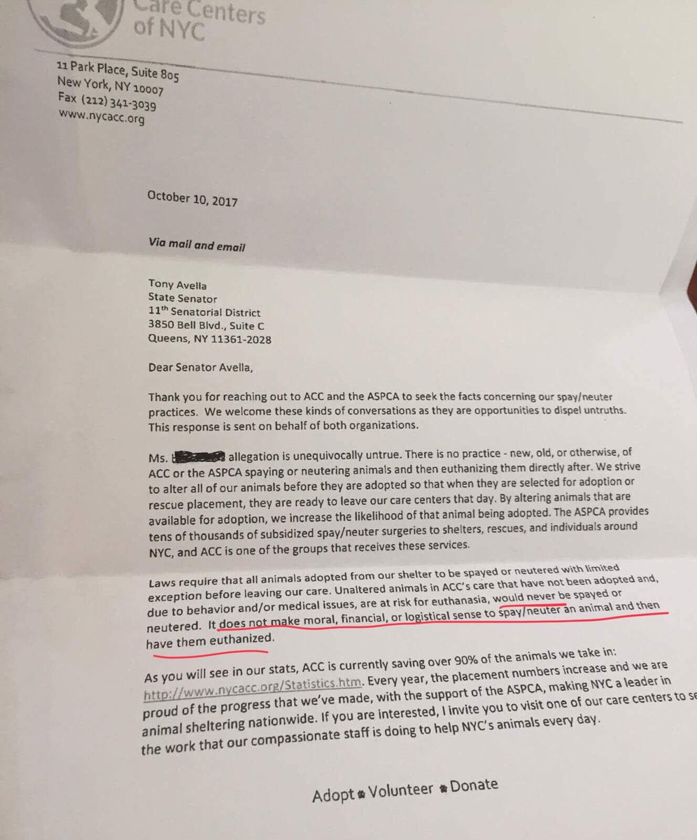 Spay-Neuter-Kill is commonly practiced through the partnership of NYCACC and ASPCA.