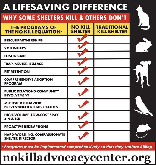 The No Kill Advocacy Center is a legal advocacy organization of attorneys that reforms shelters through litigation, legislation, education, consultation, training, and other assistance.